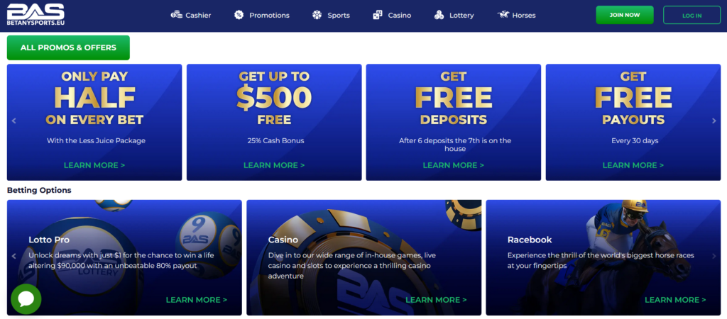 Dive into the excitement with BetAnySports and grab your chance to score up to a $500 welcome cash bonus! With a generous 25% bonus on your deposit, you can elevate your gameplay in your favourite casino games or place even bigger bets on sports. This offer requires a deposit between $25 and $2,000 through any easy payment options. Whether you’re drawn to the suspense of the lotto, the allure of the casino and racetrack, or the adrenaline of live dealer games and live betting, this cash bonus is poised to amplify your gaming joy. The smallest bonus you can snag is $6.25, given for a $25 deposit.