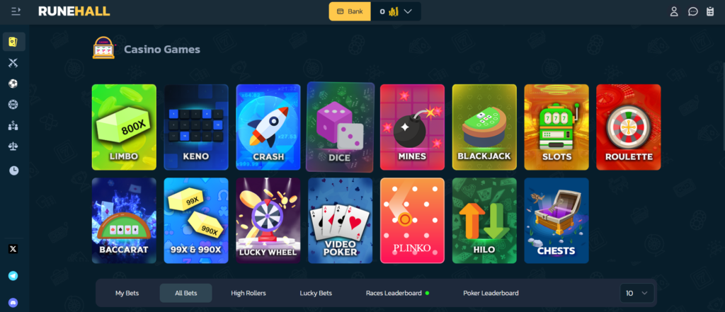 At RuneHall, they believe in offering a diverse and thrilling array of games to all players, all under a banner of fairness and transparency. The assortment includes timeless classics like Limbo, Keno, Crash, Dice, Mines, and Blackjack, as well as the iconic spinning Slots, Roulette, and Baccarat. Each game is meticulously designed to provide a gaming experience second to none.